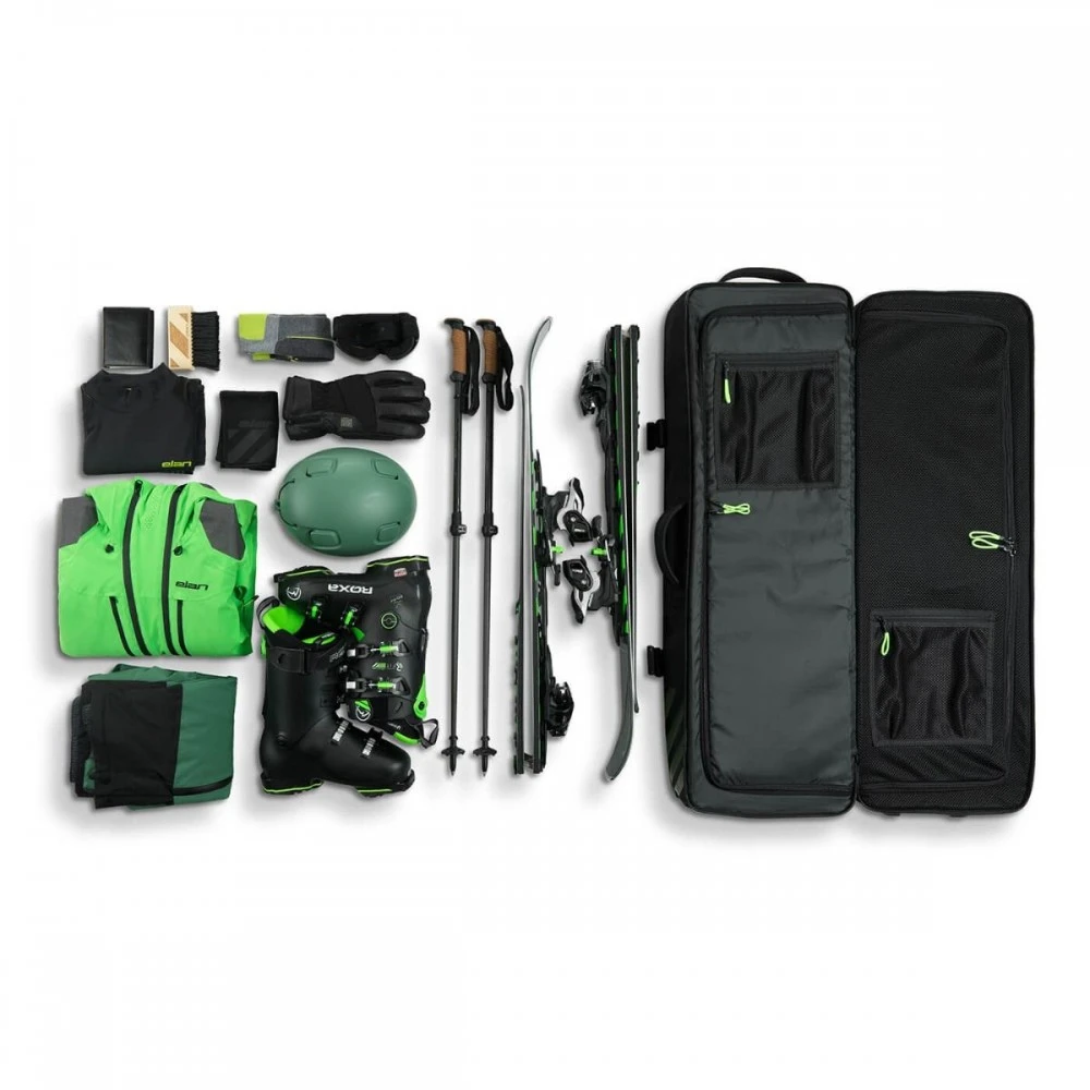 Le sac de ski à roulettes le plus compact et élégant qui soit. Conçu pour transporter les skis Voyager d’Elan, les bâtons et bien plus encore. Partez en voyage avec tout votre équipement de ski dans un seul sac !